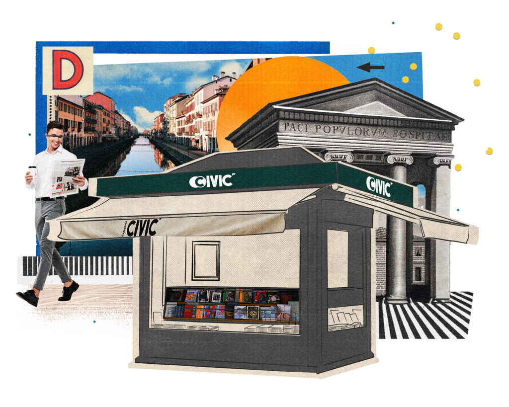 Civic è un tributo al passato che vive nel presente con un’offerta editoriale selezionata per valorizzare il concetto di Edicola e ridare vita ad un luogo da considerarsi come centro del territorio.